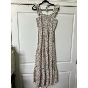 NWT Old Navy Ruffled Smocked Bodice Floral Maxi Dress Womens M Tall Tiered Boho Cottage Prairie