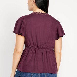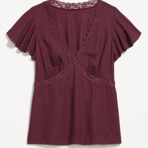 (NWT) Old Navy - burgundy lace-trim v-neck crepe top (large)