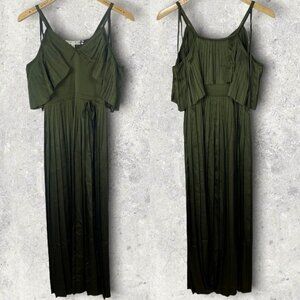 NWT Olivia Palermo Pleated Off Shoulder Satin Maxi Dress Green Size 00 Petite