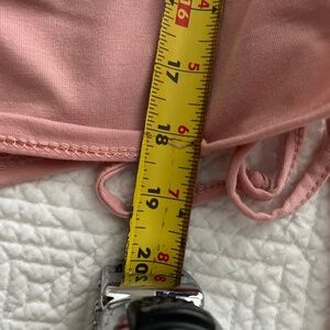 Pale pink top by Olivia Rae. A cute top rouched at each side and has faux ties. No zips or buttons. A top to go with many skirts, Pants or jeans in your closet.