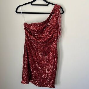 New with tag, one shoulder sequins mini dress, back zipper closure, front cutout accent.