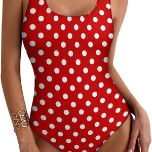 NWT One piece Swimsuit with detachable cover-up skirt - Red and white polka dot