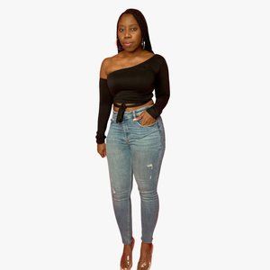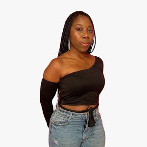 (NWT) One-Shoulder Wrap Tie Top - Black