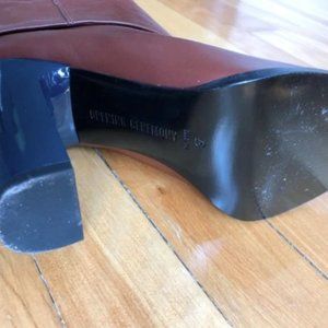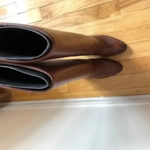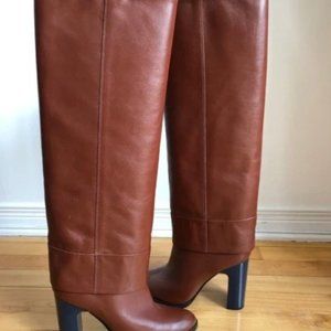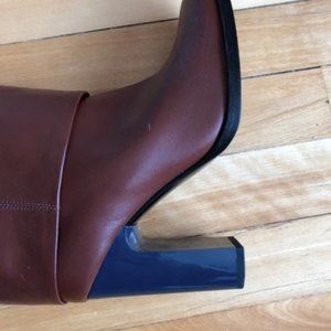New with Factory Tag - EXCLUSIVE COLOR - Opening Ceremony heeled boots, stove pipe calf shape, glossy navy heel & Dark tan leather upper. SUPER COMFY, but i can't walk in heels, so I have no use for them. This color was never released by OC, and these are factory sale samples.