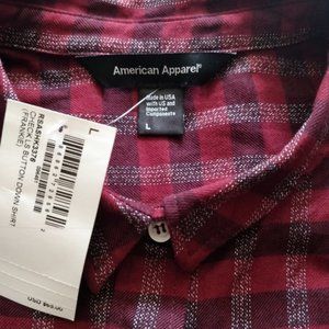 NWT Original American Apparel Check Plaid Button Up Blouse Black & Maroon Large