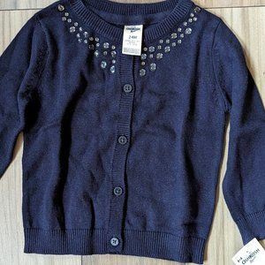 NWT Oshkosh B'gosh Girls Knit Sweater Navy Blue Cardigan with Studs L/S …