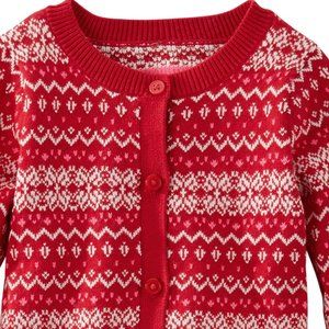 NWT Oshkosh B'gosh Toddler Baby Girls Sweater RED Fair Isle Button-Down Rib Cuff & Neckline 18 Months