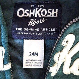 Vintage "Oshkosh" logo, front pockets, and soft jersey-lined hood add detailing
