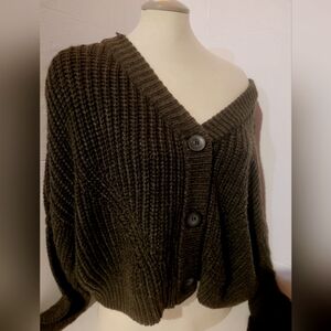 NWT Oversize Cropped Design Lab Lord & Taylor Dark Green Knit Sweater Size M