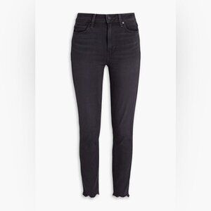 NWT PAIGE ultra high rise Hoxton Ankle Raw Hem Smokey Charcoal Black denim w 24