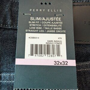 NWT PERRY ELLIS jeans Sz 32 x 32 SLIM FIT STRAIGHT LEG STRETCH LOW Dark Indigo