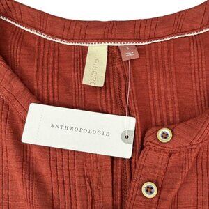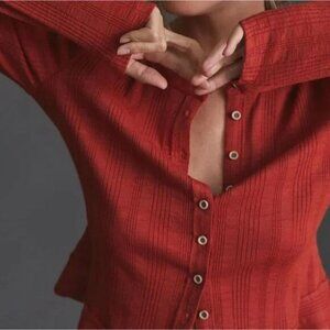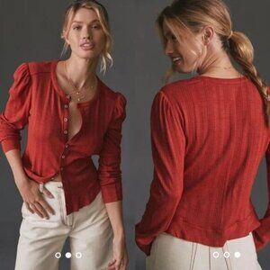NWT PILCRO Anthropologie Puff Sleeve Button Front Ribbed Top Size Small Red