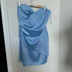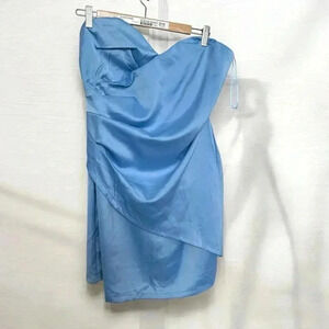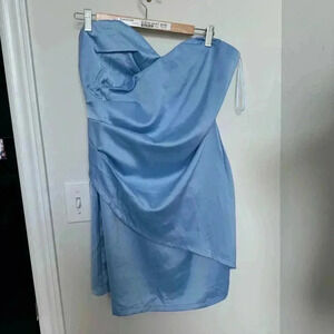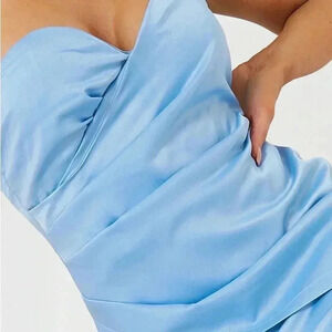 NWT PLT Blue Satin Bandeau Wrap Detail Bodycon Dress 12
