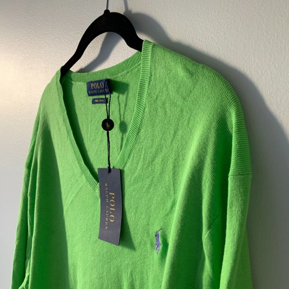 New with tags Polo Ralph Lauren lime green men's v-neck sweater.