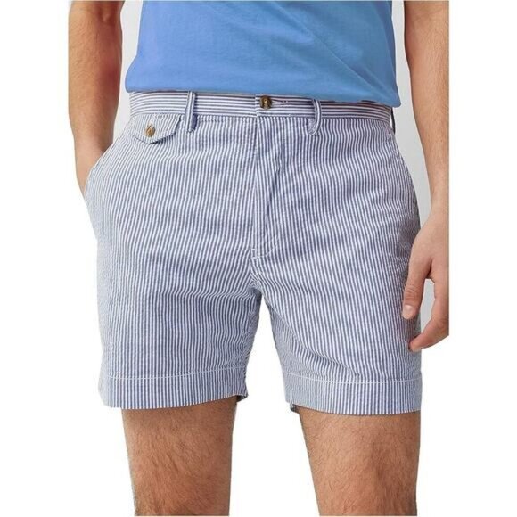 NWT POLO Ralph Lauren Men's 9" Striped Classic Fit Shorts Size 52 B Blue / White