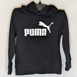NWT PUMA Boys Kids Unisex Black Long Sleeve Fleece Hoodie with Silver logo