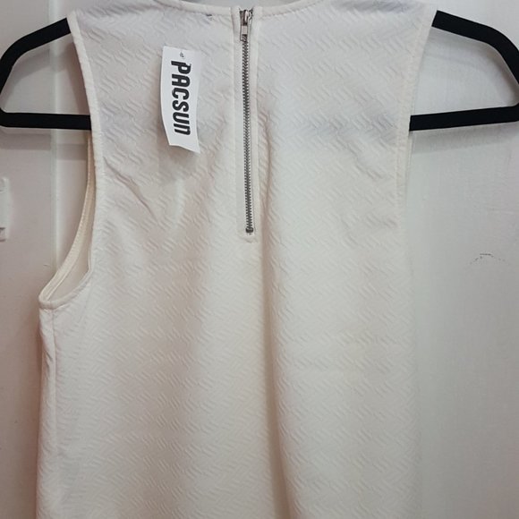 This is a sleeveless PacSun crop top in ivory in size small. The fabric is textured and the back has a zipper that runs from partially down from the neck.