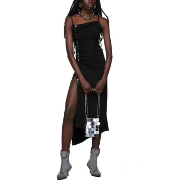 NWT Paco Rabanne Black Ruched Jersey Dress