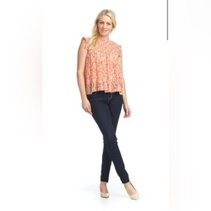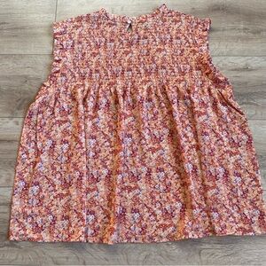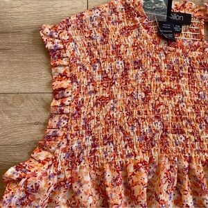 NWT Papillon Blouse Ditsy floral ruffle sleeves smocked chest XXL