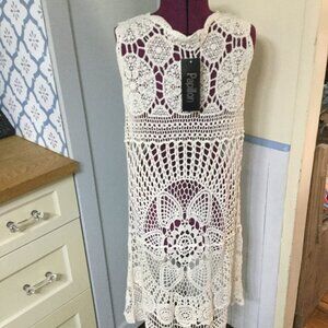 NWT Papillon Crocheted vest Beige in color size large beautiful vest
