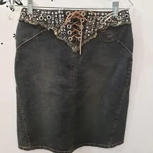 New with tags from my boutique. Fitted skirt by Parasuco with rhinestone stud and rivet detail, corset lace up detail on back.