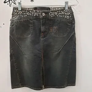 NWT Parasuco Rivet & Rhinestone Jean Skirt