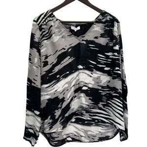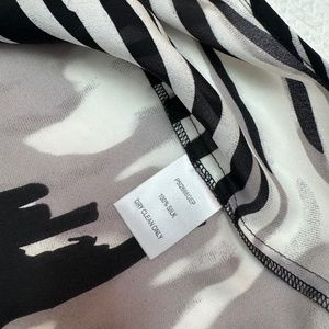 NWT Parker Black Grey 100% Silk V- Neck Pullover Blouse Top Size Large