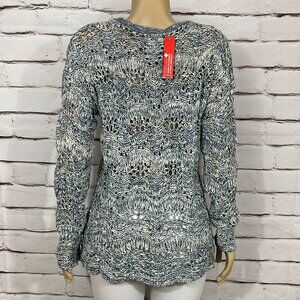 NWT Parkhurst Sweater Women’s Deep Sea Blue Combo Open Knit Long Sleeve