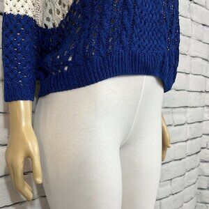 NWT Parkhurst Sweater Womens Medium Blue Open Knit 3/4 Sleeve