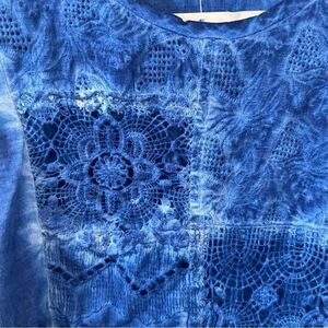 NWT Parsely & Sage Blue Tie dye Embroidery Lace Tunic Blouse