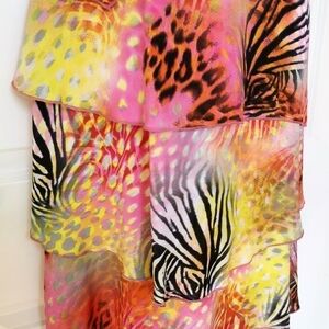 NWT Party tiered Silky dress in pink, yellow leopard print