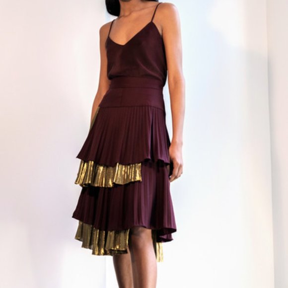 Sumptuous, sexy and sensually subtle. Playful Pleats in Port royal and gold metallic.