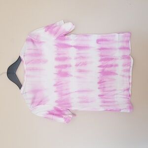 Striped pink tie dye tee shirt. Casual fit, super soft, 60% cotton 40% polyester.