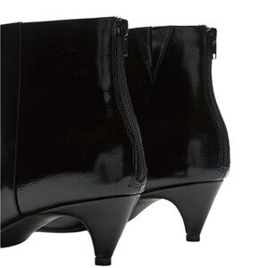 This ankle boot for extra-wide feet features a pointed toe, a low heel, and a glossy finish to elevate your look this season and highlight your feet.