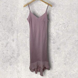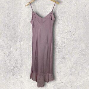 Per Una Marks & Spencer Lilac Purple Midi Slip Dress in Women's Size 14 Regular (UK Sizing). Equivalent to US size 10. V-neckline. Spaghetti straps. 54% linen and 46% viscose. Brand new with tags but please note there is a tear on the lace part at the bottom hem. See photos.