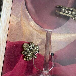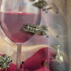 The rings include: grape leaf, grape cluster, bottle opener, cheese slice, wine goblet