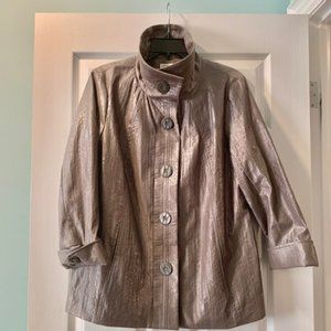 It can be worn two ways, with a flat collar or buttoned up. Fully lined.