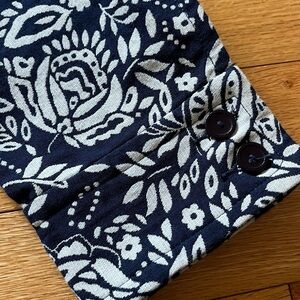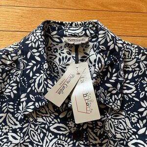 This elegant jacket from Pierre Cardin features a striking blue and white design with a notched collar and long sleeves.