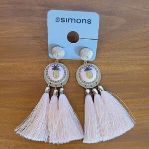 NWT Pineapple Studs with pale pink tassles Simmons Fashion Jewelry Earrings