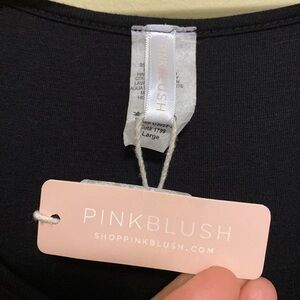 New, pink blush maternity wear maxi dress. Beautiful Boho design. Black and tan geometric print with three-quarter length sleeves. Solid black top with printed bottom. Very flattering. Could make a great workwear piece or a going out casual dress. Could also be dressed up.