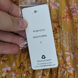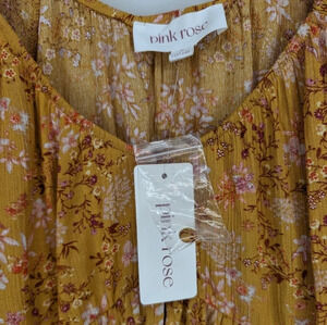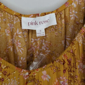 NWT Pink Rose Mustard Yellow Floral Flowy Cropped Top Capped Sleeves Women Small
