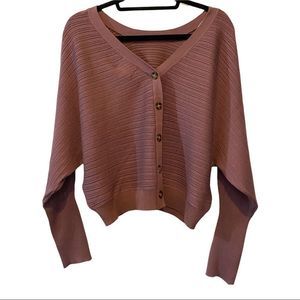 NWT Pink Rose wear 2 ways v neck button back sweater in sugarplum. Large ribbed