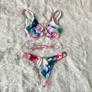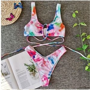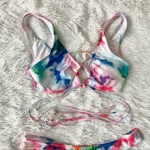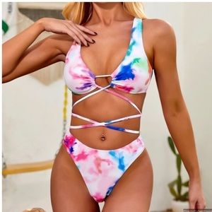 NWT PinkHolly Designer Swimwear Tie Dye Thing Wrap High Waist Bikini