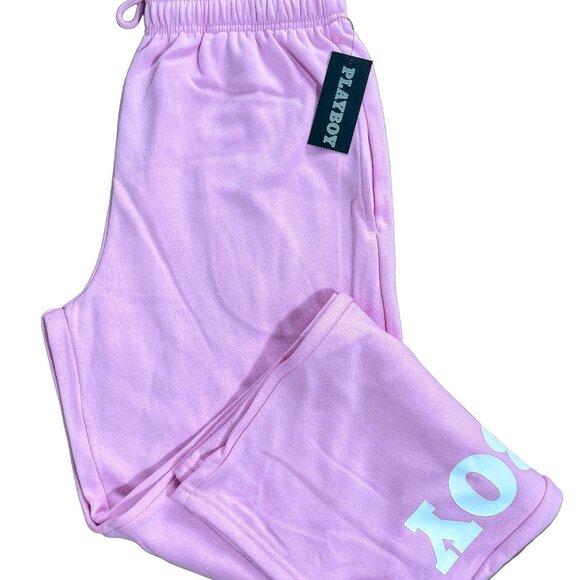 Official licensed Playboy wide leg sweatpants, new with tags, designed for both comfort and style. Made from a soft fleece-like interior blend of polyester and cotton, these sweatpants feature an elastic drawstring waist, roomy pockets, and relaxed wide leg bottoms.
