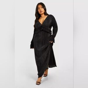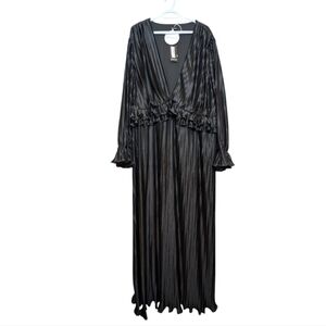 NWT Plus Black Pleated Long Sleeve Ruffle Detail Maxi Dress Size 28 Women