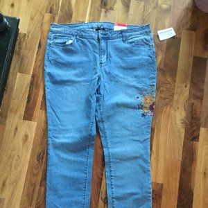 NWT Plus size jeans with embroidered floral design