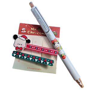 NWT Pochacco Christmas Holiday Hair Clips and Pen