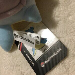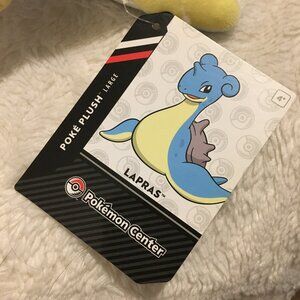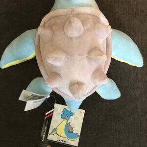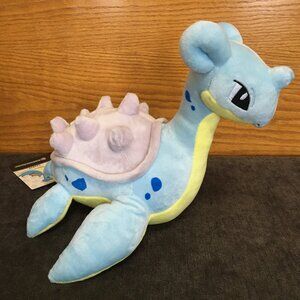 Very good, unused with tags condition Pokemon/Pocket Monsters Lapras plush for America's Pokemon Center line. This plush is larger than most and is made with extremely soft minky (a very soft polyester typically used for making high quality plush). The shell is beautifully sewn together and the eyes are cleanly embroidered on. The old school collector must-have.