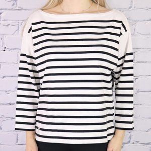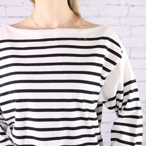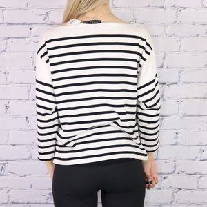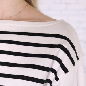 NWT: missing the brand tag but it still has the Hudson's Bay price tag. The sweater itself is perfect. This is a relaxed fit pullover with horizontal black stripes. Sleeves are 7/8 length. ***NOTE: the hudson's bay price tag says size 14, but the actual label sewn into the sweater says size M. In my opinion this is definitely a size M sweater with a loose fit