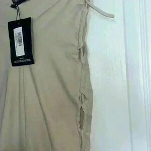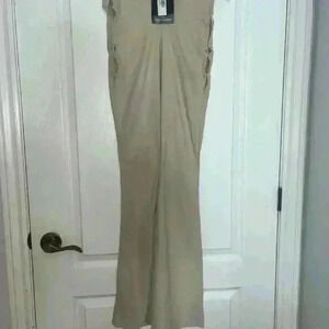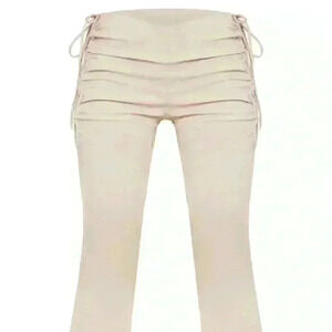 NWT PrettyLittle Thing Stone Stretch Woven Cut Out Side Flare Trousers